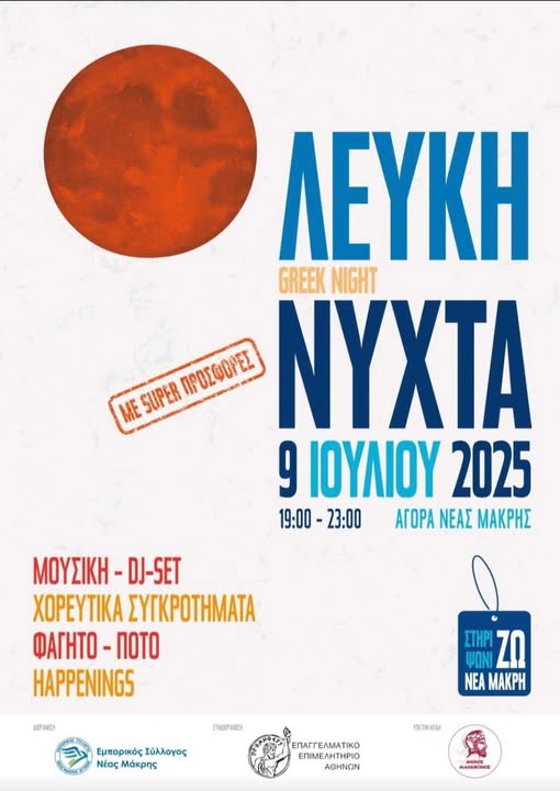 Τετάρτη 9 Ιουλίου – ‘Λευκή Νύχτα’ στη Νέα Μάκρη