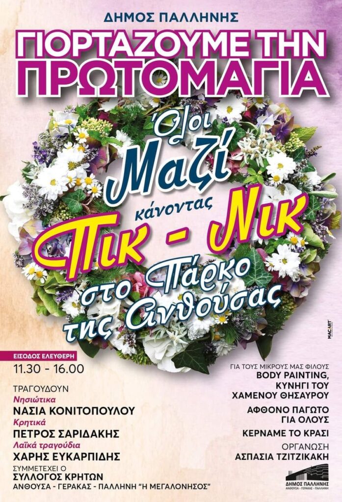 Ο Δήμος Παλλήνης διοργανώνει το πρωί της Δευτέρας 1ης Μαΐου στις 11:30 Πικ-Νικ στο πάρκο της Ανθούσας και είναι μια μοναδική ευκαιρία για ν’ απολαύσετε με τα παιδιά σας στιγμές χαλάρωσης και ξεγνοιασιάς.
