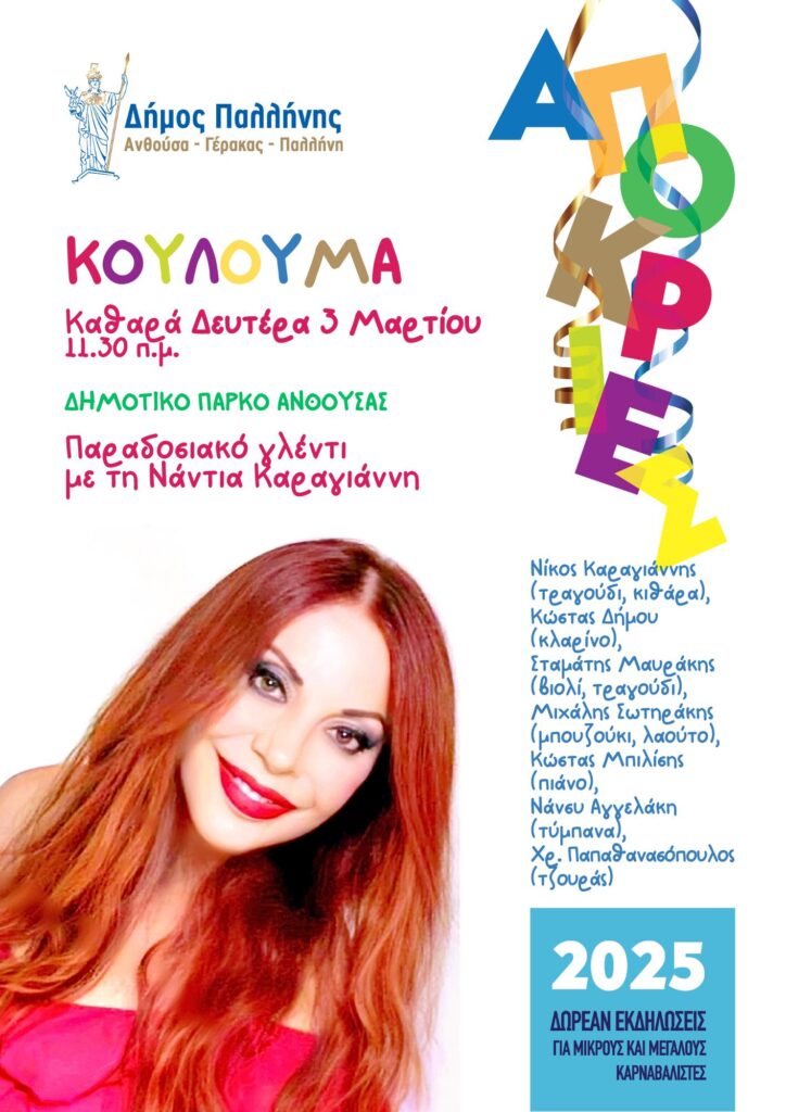Ο Δήμος Παλλήνης γιορτάζει τα Κούλουμα διοργανώνοντας ένα μεγάλο παραδοσιακό, λαϊκό γλέντι στο Δημοτικό Πάρκο Ανθούσας.