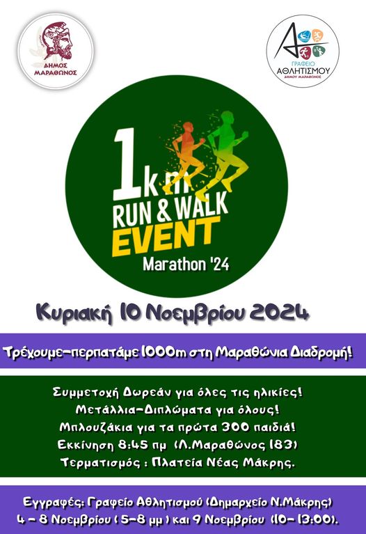 Το Γραφείο Αθλητισμού και Νέας Γενιάς του Δήμου Μαραθώνος, στο πλαίσιο της διεξαγωγής του 41ου Αυθεντικού Μαραθωνίου, την Κυριακή το πρωί πραγματοποιεί τον 11ο Μικρό Μαραθώνιο 1.000 μέτρων στη Νέα Μάκρη, στον οποίο συμμετέχουν, τρέχοντας ή περπατώντας, κυρίως μικρά παιδιά, αλλά και πολίτες κάθε ηλικίας.