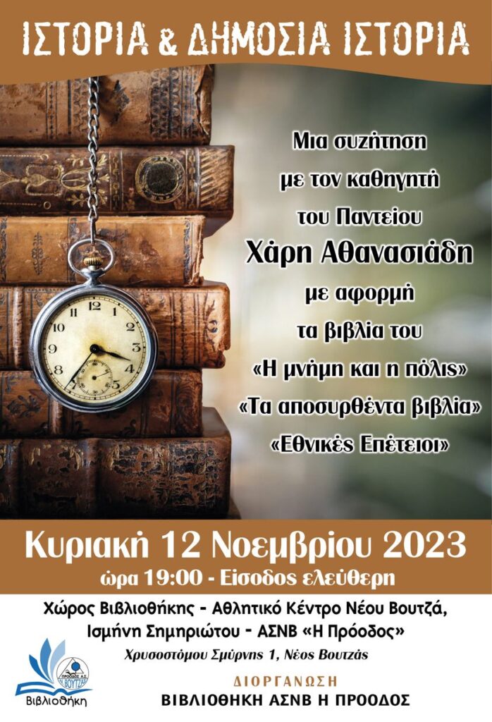 Την Κυριακή στις 7μμ η Βιβλιοθήκη του Νέου Βουτζά παρουσιάζει μια ξεχωριστή Διάλεξη – Συζήτηση για την ‘Ιστορία και Δημόσια Ιστορία’.