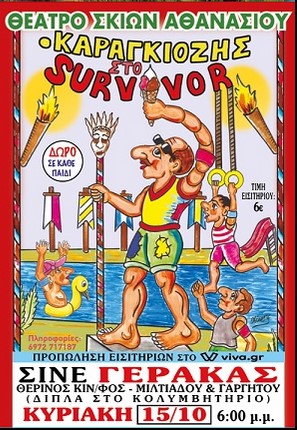 Την Κυριακή στις 6μμ το Σινέ Γέρακας παρουσιάζει το Θέατρο Σκιών Αθανασίου στην παράσταση ‘Ο Καραγκιόζης στο Survivor’.