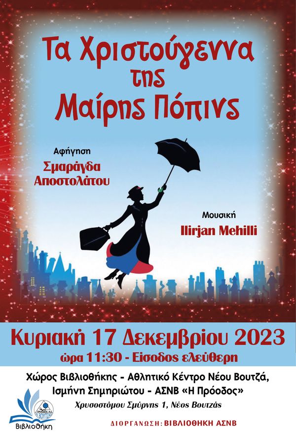 Την Κυριακή στις 11.30πμ η Βιβλιοθήκη του Συλλόγου Νέου Βουτζά παρουσιάζει ‘Τα Χριστούγεννα της Μαίρης Πόπινς’.