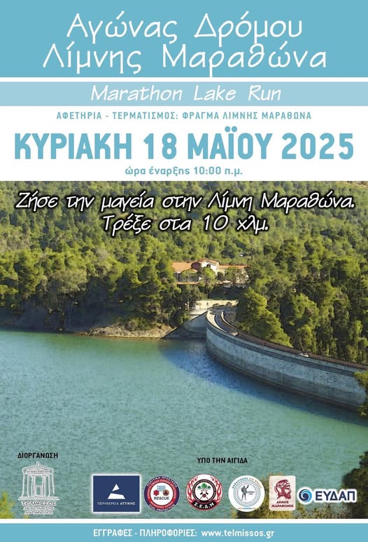 Την Κυριακή στις 9πμ ο Σύλλογος Μαραθωνοδρόμων ΤΕΛΜΗΣΣΟΣ Νέας Μάκρης – Μαραθώνος προκηρύσσει την Αθλητική – Πολιτιστική συνάντηση αναψυχής ‘Αγώνας Δρόμου Λίμνης Μαραθώνα – Marathon Lake Run’, με αφετηρία το πανέμορφο και μοναδικό Φράγμα της Λίμνης Μαραθώνα.