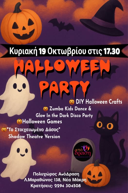 Την Κυριακή το απόγευμα, μεταξύ 5.30μμ – 7.30μμ, ο Πολυχώρος Έκφρασης & Δημιουργίας ΑπόΔΡΑΣΗ διοργανώνει το απόλυτο Halloween Party!