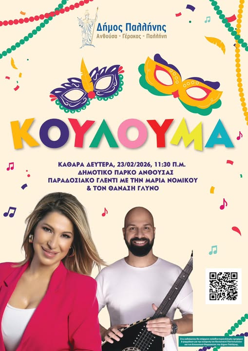 Ο Δήμος Παλλήνης γιορτάζει τις Αποκριές και την Καθαρά Δευτέρα με πλούσιο πρόγραμμα εκδηλώσεων για μικρούς και μεγάλους!