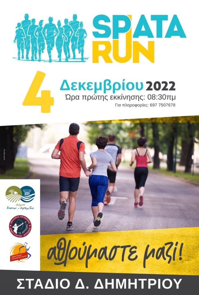 Ο Αθλητικός Οργανισμός του Δήμου Σπάτων Αρτέμιδος «Η Άρτεμις» κι ο Αθλητικός Σύλλογος «Ήλιος» ανακοινώνουν την διεξαγωγή του 1ου αγώνα δρόμου στην περιοχή των Σπάτων με την επωνυμία «Spata Run».