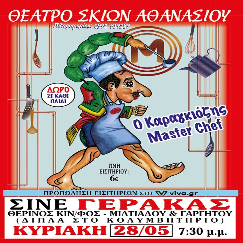 Την Κυριακή στις 7.30μμ ο θερινός κινηματογράφος Cine Γέρακας Σίσσυ παρουσιάζει το Θέατρο Σκιών Αθανασίου στην παράσταση ‘Ο Καραγκιόζης Μάστερ Σεφ’.