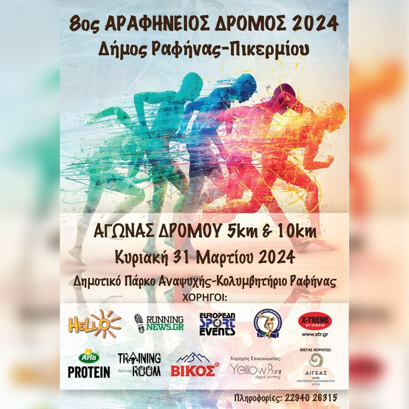 Την Κυριακή 31 Μαρτίου ο Δήμος Ραφήνας – Πικερμίου και ο ΔΑΣ ΑΡΑΦΗΝ προκηρύσσουν για 8η χρονιά τη διεξαγωγή δρόμου ‘8ος Αραφήνειος Δρόμος’.