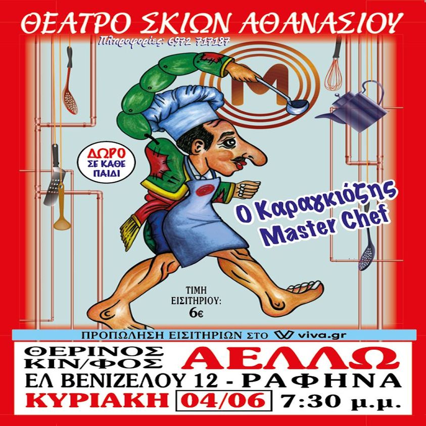 Την Κυριακή στις 7.30μμ ο θερινός κινηματογράφος ΑΕΛΛΩ στη Ραφήνα παρουσιάζει το Θέατρο Σκιών Αθανασίου στην παράσταση “Ο Καραγκιόζης Μάστερ Σεφ”.