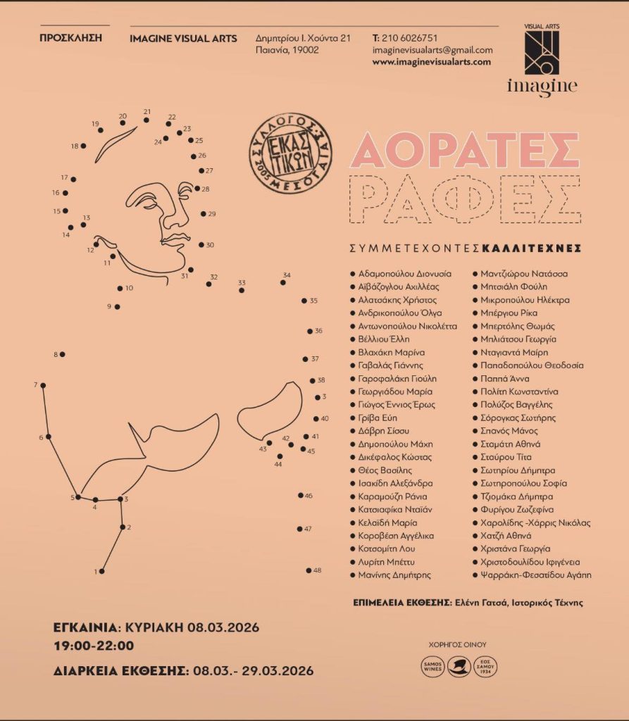 Με αφορμή την Παγκόσμια Ημέρα της Γυναίκας, ο Σύλλογος Εικαστικών Μεσογαίας, την Κυριακή  το απόγευμα στις 7μμ, παρουσιάζει στην γκαλερί Imagine Visual Arts την Ομαδική Έκθεση Ζωγραφικής ‘Αόρατες Ραφές’.