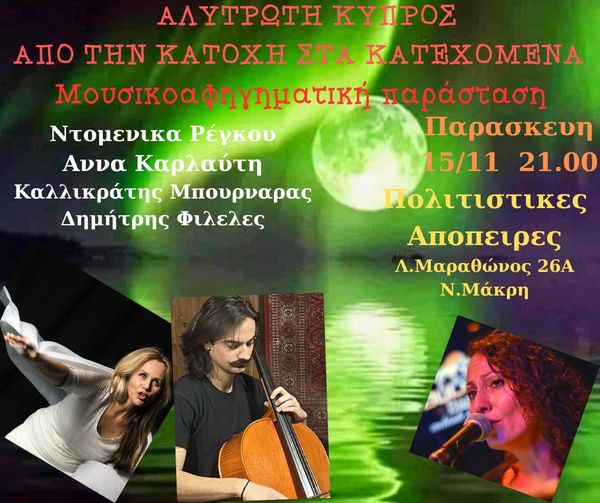 Παρασκευή 15 Νοεμβρίου – Μουσικοαφηγηματική Παράσταση ‘Αλύτρωτη Κύπρος – Από την Κατοχή στα Κατεχόμενα’
