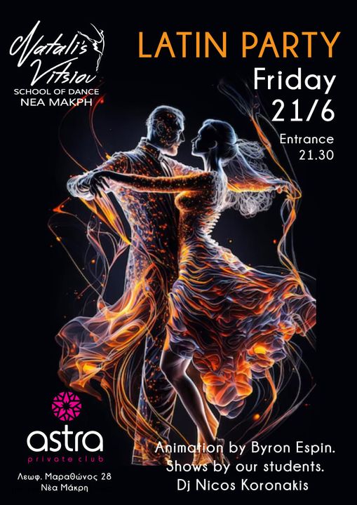 Η Σχολή Χορού Natali Vitsiou School of Dance στη Νέα Μάκρη διοργανώνει ένα μεγάλο Καλοκαιρινό Latin Party στον υπέροχο χώρο δεξιώσεων του Astra Private Club.
