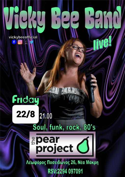 Την Παρασκευή το βράδυ, στις 9μμ, το The Pear Project στη Νέα Μάκρη διοργανώνει μία όμορφη μουσική βραδιά με την Vicky Bee σ’ ένα εκλεκτικό μείγμα μουσικής.