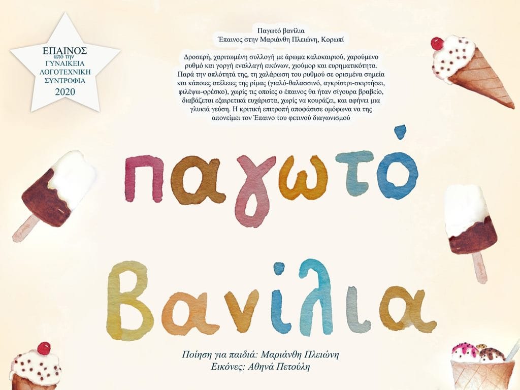 Παρασκευή 22 Μαρτίου – Διαδικτυακή Παρουσίαση Παιδικού Βιβλίου ‘Παγωτό Βανίλια, της Μαριάνθης Πλειώνη