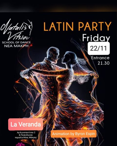 Την Παρασκευή το βράδυ, στις 9.30μμ, η σχολή χορού ‘Natali Vitsiou School of Dance’ στη Νέα Μάκρη, ξεκινάει δυναμικά με τα γνωστά σε κέφι και χορό Salsa – Latin Party της, διοργανώνοντας το πρώτο για τη φετινή φθινοπωρινή σεζόν, στο La Veranda, στην παραλία της Νέας Μάκρης.