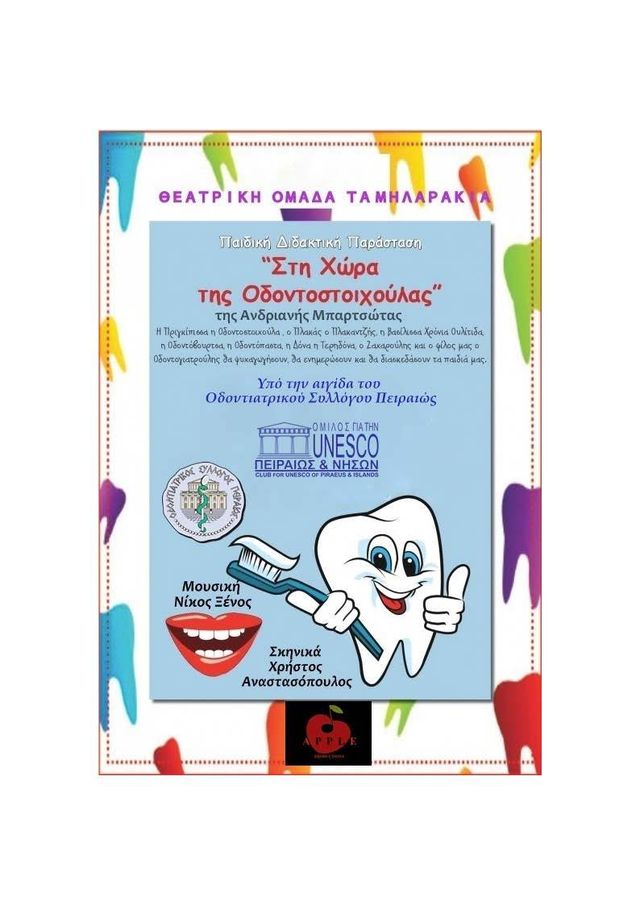 Πρόκειται για ένα ιδιαίτερο διδακτικό παραμύθι, που θα ψυχαγωγήσει τα παιδιά με τη μουσική και τα τραγούδια του ενώ ταυτόχρονα θα τα ενημερώσει για την υγεία των δοντιών και θα τα μάθει πως να φροντίζουν και να πλένουν τα δοντάκια τους με τον πιο διασκεδαστικό τρόπο, το θέατρο.