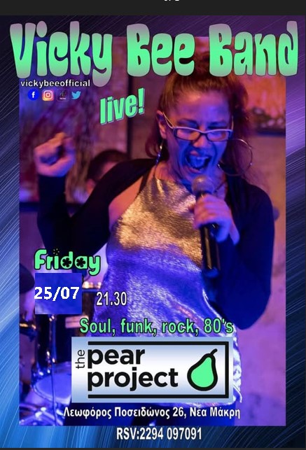 Την Παρασκευή το βράδυ, στις 9.30μμ, το The Pear Project στη Νέα Μάκρη διοργανώνει μία όμορφη μουσική βραδιά με την Vicky Bee σ’ ένα εκλεκτικό μείγμα μουσικής.