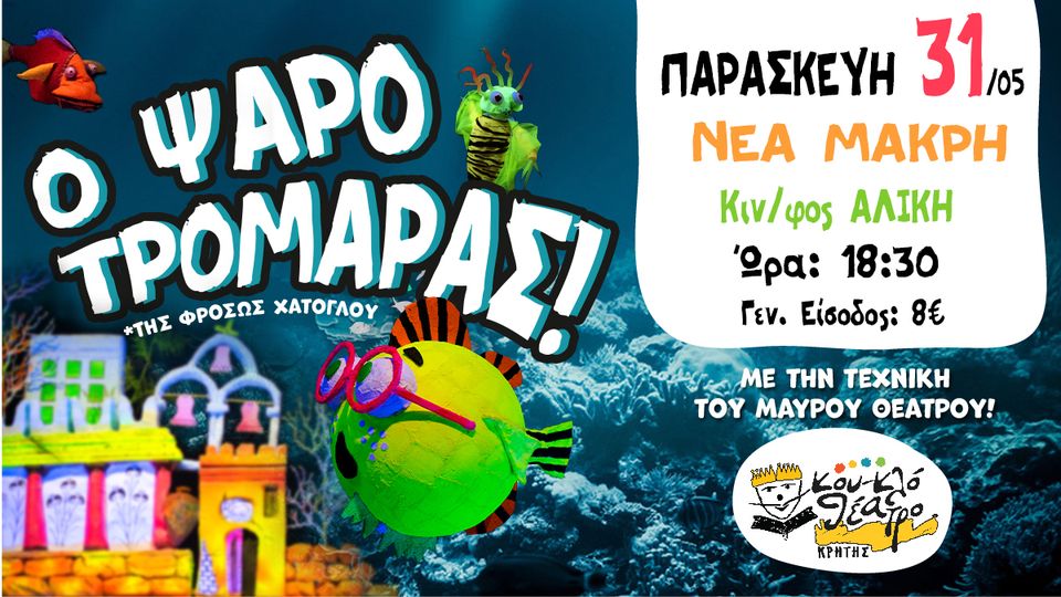 Συναγερμός στην Ψαροχώρα! Έρχεται ο Ψαροτρομάρας στη Νέα Μάκρη για μία μόνο παράσταση, την Παρασκευή το απόγευμα στις 6.30μμ στο Σινέ Αλίκη!