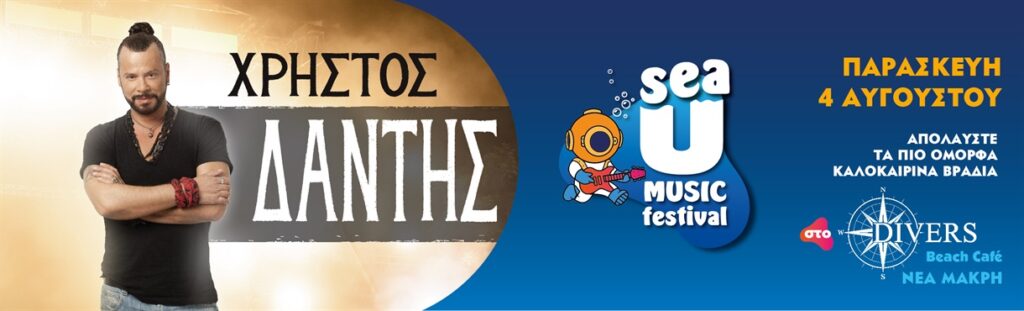 Την Παρασκευή στις 9μμ ο Χρήστος Δάντης θα βρεθεί στη σκηνή του Sea U Music Festival στο Divers Beach Cafe στο Ζούμπερι για να μας παρουσιάσει ένα δυναμικό μουσικό πρόγραμμα.