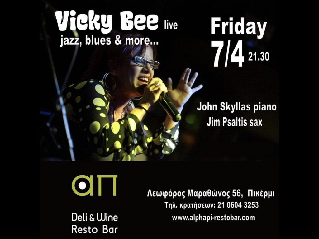 Την Παρασκευή στις 9.30μμ το απ Deli & Wine Resto Bar στο Πικέρμι διοργανώνει μία όμορφη μουσική βραδιά με την Vicky Bee σ’ ένα εκλεκτικό μείγμα μουσικής.