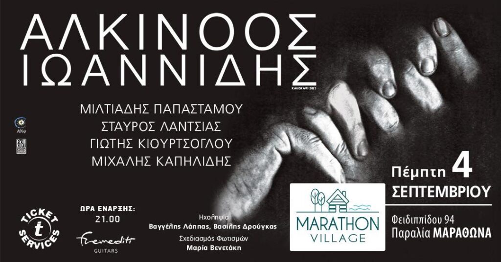 Την Πέμπτη το βράδυ, στις 9μμ, το Marathon Village παρουσιάζει τον μοναδικό Αλκίνοο Ιωαννίδη σε μια συναυλία γεμάτη δημιουργικότητα, συγκίνηση και ενέργεια!