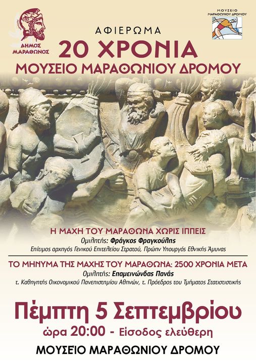 Την Πέμπτη το βράδυ, στις 8μμ, το Μουσείο Μαραθωνίου Δρόμου παρουσιάζει την Εκδήλωση – Αφιέρωμα στην Μάχη του Μαραθώνα ’20 Χρόνια Μουσείο Μαραθωνίου Δρόμου’ .