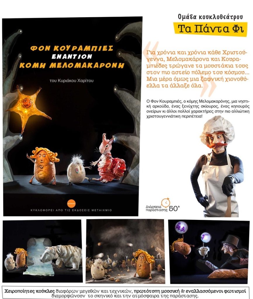 Το Σάββατο στις 5μμ η ΣυνΚίνησις σας προσκαλεί στην παιδική παράσταση – κουκλοθέατρο ‘Φον κουραμπιές εναντίον Κόμη Μελομακαρόνη’, του Μιχάλη Χαρίτου, από την ομάδα κουκλοθεάτρου Τα Πάντα Φι.