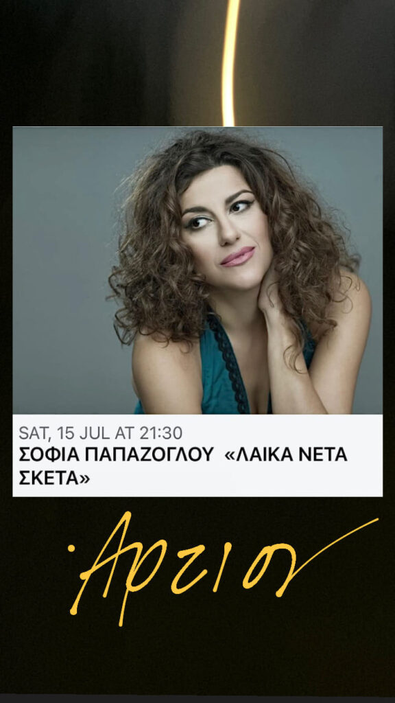 Το Σάββατο στις 9.30μμ το Άρτιον Café Restaurant Bar στο Μάτι παρουσιάζει τη Σοφία Παπάζογλου στη μουσική παράσταση ‘Λαϊκά νέτα σκέτα’.