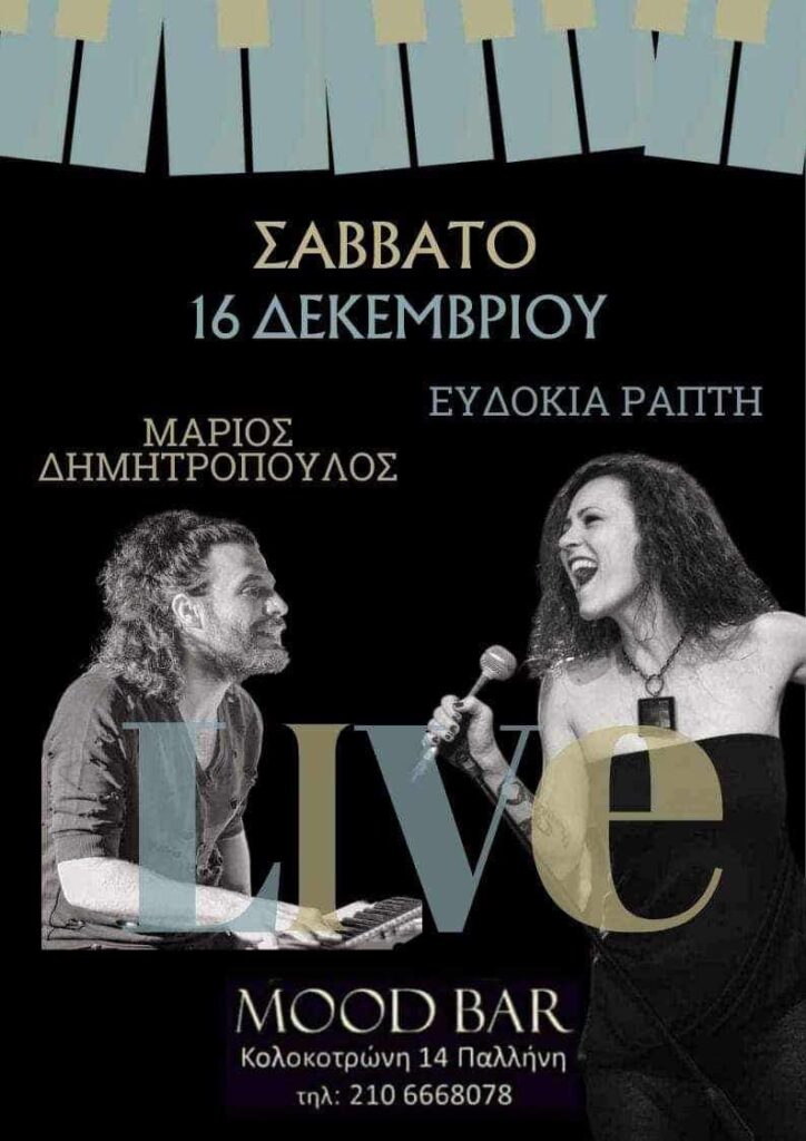 Το Σάββατο στις 10μμ το Mood Bar στην Παλλήνη διοργανώνει μια όμορφη μουσική βραδιά γεμάτη κέφι και τραγούδι με την μοναδική Ευδοκία Ράπτη.
