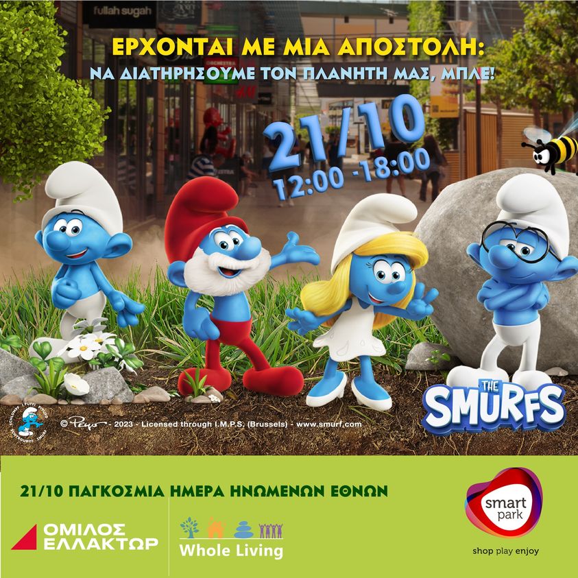 Τα Στρουμφάκια έρχονται στο Smart Park το Σάββατο μεταξύ 12μμ με 6μμ και όλοι μαζί, κάνουμε τον κόσμο μας καλύτερο!