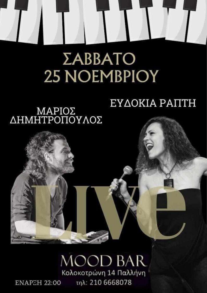 Το Σάββατο στις 10μμ το Mood Bar στην Παλλήνη διοργανώνει μια όμορφη μουσική βραδιά γεμάτη κέφι και τραγούδι με την μοναδική Ευδοκία Ράπτη.