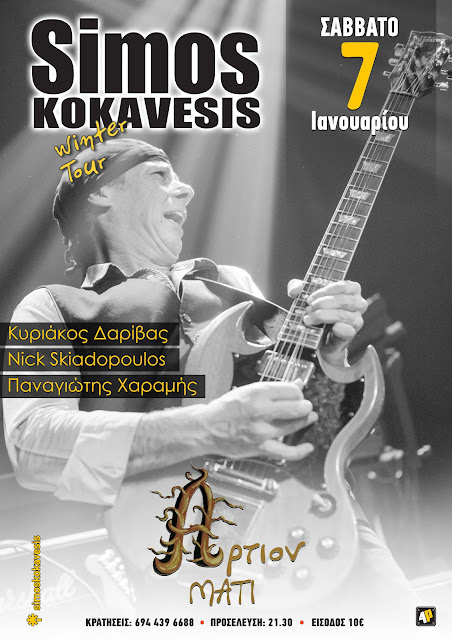 Το Σάββατο 7 Ιανουαρίου στις 9.30μμ το Άρτιον Café Bar στο Μάτι διοργανώνει άλλη μία ξεχωριστή μουσική βραδιά για τους λάτρεις της rock ‘n blues μουσικής με τον βιρτουόζο κιθαρίστα Simo Kokavesis σε μια “συλλεκτική” εμφάνιση, στα πλαίσια της χειμερινής περιοδείας του, που μετά την 7μηνη παραμονή του στην Σκανδιναβία επέστρεψε για να μπορέσει να τον απολαύσει και το Αθηναϊκό κοινό του.