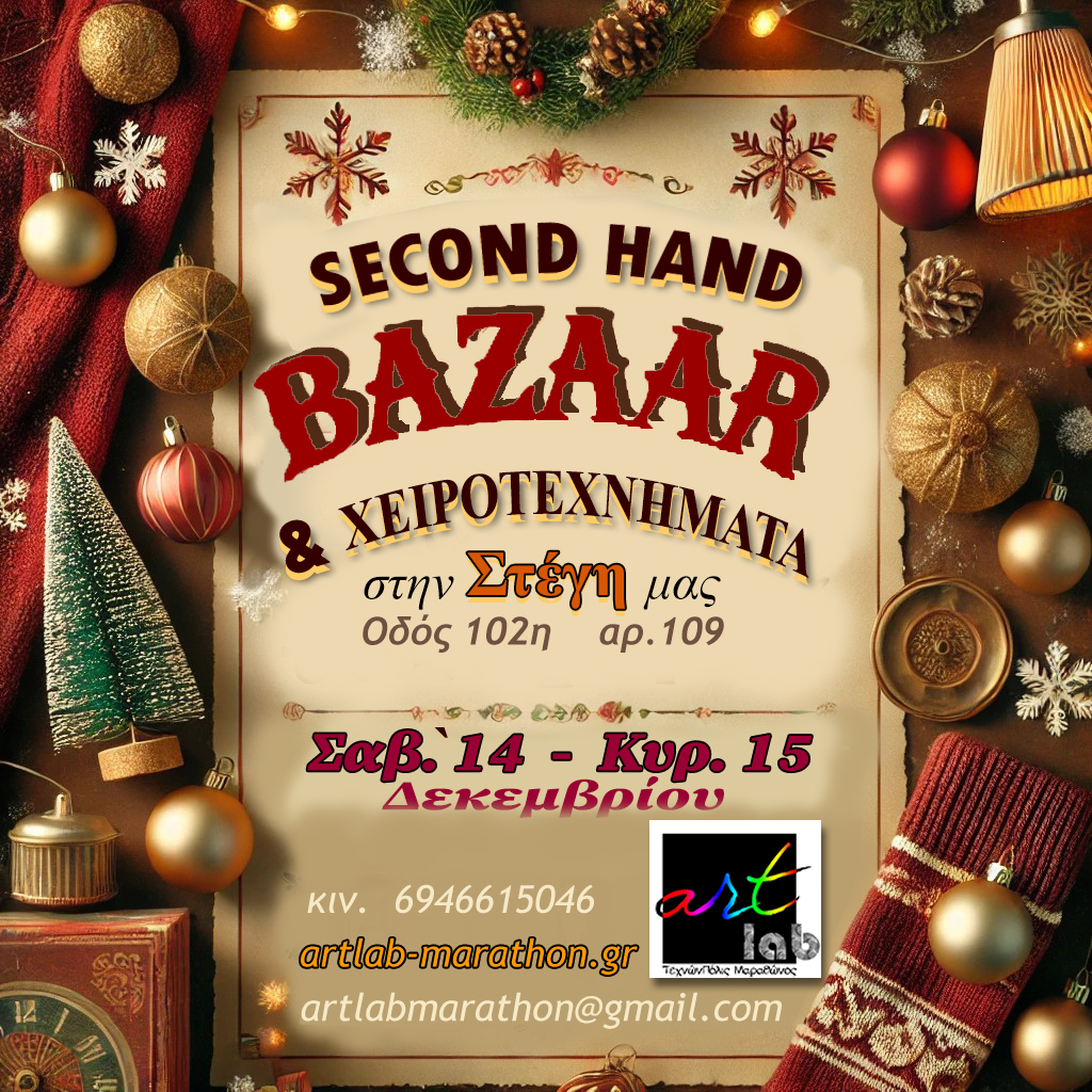 Το Σαββατοκύριακο, μεταξύ 10πμμ με 10μμ, το artlab-ΤεχνώνΠόλις Μαραθώνος διοργανώνει Χριστουγεννιάτικο Bazaar Χειροτεχνημάτων και Second hand.