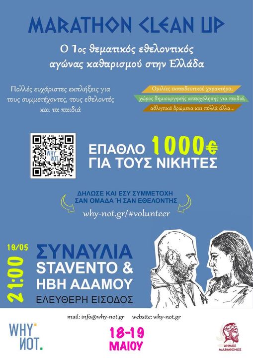 Το Σαββατοκύριακο η Μ.Κ.Ο. Why-Not διοργανώνει, υπό την αιγίδα του Δήμου Μαραθώνος, τη δράση “1ο Marathon Clean Up”.