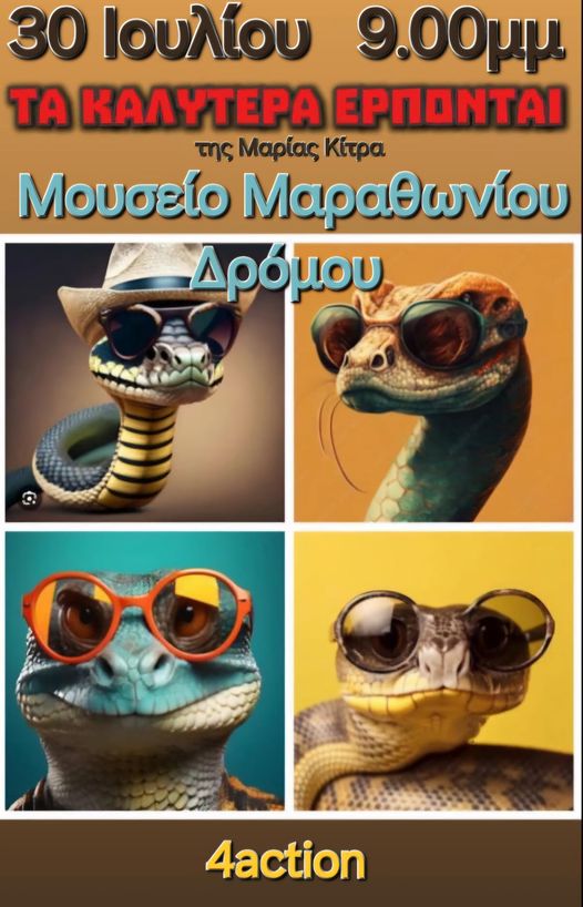Την Τρίτη στις 9μμ το Μουσείο Μαραθωνίου Δρόμου παρουσιάζει την Θεατρική Παράσταση ‘Τα καλύτερα έρπονται’ της Μαρία Κίτρα.